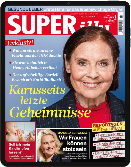 Ab dem 07.03.2019 im Shop: SUPERillu – Exklusiv! – Warum sie nie an eine Flucht aus der DDR dachte – Sie war heimlich in Henry Hübchen verliebt – Der unfreiwillige Bordell-Besuch mit Kathi Thalbach – Karusseits letzte Geheimnisse