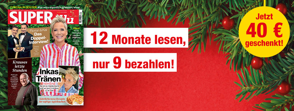 Der kostenlose, personalisierte Newsletter der SUPERillu-Redaktion: Exklusive Nachrichten und Meldungen in Ihrem E-Mail-Postfach. Wenn Sie den Newsletter nicht möchten, fahren Sie bitte erst fort, nachdem sie ihn aus dem Warenkorb entfernt haben. Natürlich können Sie den Newsletter auch später jederzeit kostenlos abbestellen.